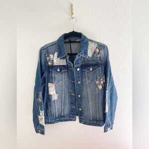 Cute patchwork design with bandana and floral patches. A touch of Western vibes. New. Great gift or treat yourself to this timeless bohemian trucker jacket. Ptp 21”, length 22”. Questions? Leave a comment below!