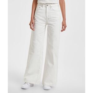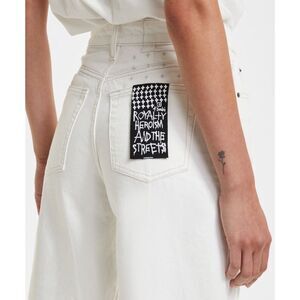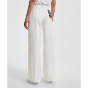 The Kicker Jean Blizzard is a wide leg denim jean with mid rise and classic Ksubi five pocket detailing in a white colourway. Made from premium European rigid cotton denim. This style features branded hardware, signature crosses and removable pocket tag.