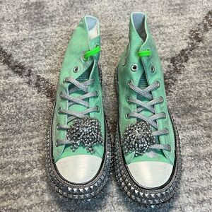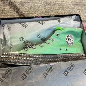 Free People x Nan-Ku Couture Cruise Studded Hi Top Sneakers Mint Green US 11