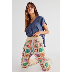 Cool in crochet, these perfect mom-style jeans from our We The Free collection feature multicolored knit paneling throughout in a high-rise, tapered-leg silhouette.