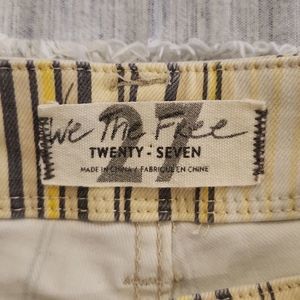 Free People yellow striped, frayed hem kick boot jeans size 27!