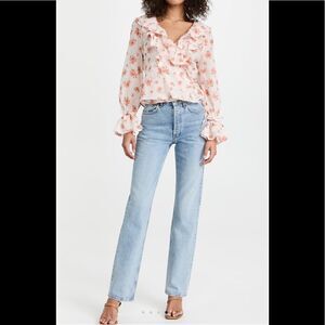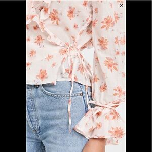 A charming Free People wrap top with a lightweight feel, accented with ruffly trim and detailed with a sparse