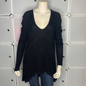 Free People Black Drippy Thermal Sunset Park Top Size Small. Soft and oversized