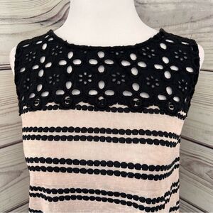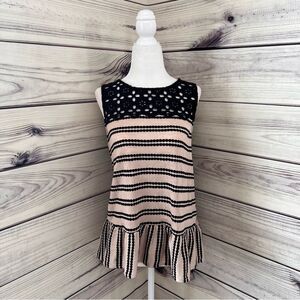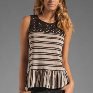 Free People Black & Tan Eyelet Striped Peplum Tank Top