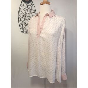 Really nice white sheer chiffon, long sleeve Free People Blouse with peach trim