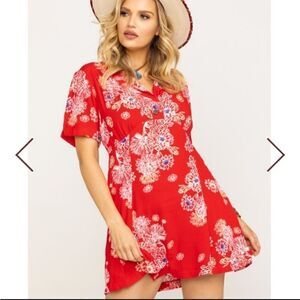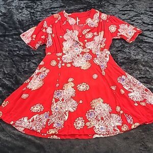 Free People "Blue Hawaii" Red Floral Mini Dress