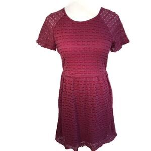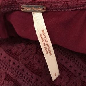 Free People Burgundy Lace Short Sleeve Dress Sz 6