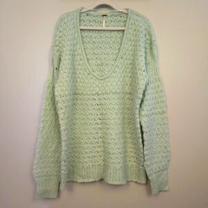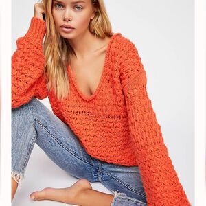 Coziest pullover sweater featured in a chunky knit design with an oversized fit and plunging neckline. Perfect open knit sweater to bring to the beach!