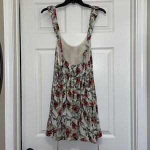 Free People Dear You Floral Mini Dress, size medium. Excellent used condition. Lined. Cute ruffle detail on straps. Care & content tags in photos.