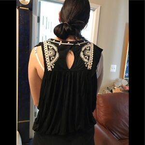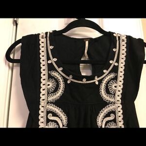 Free People Dos Segundos Crochet Embroidered Bohemian Top Black Size S/P