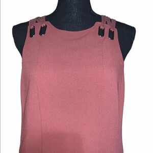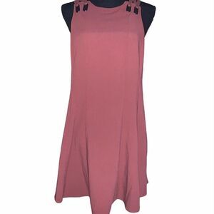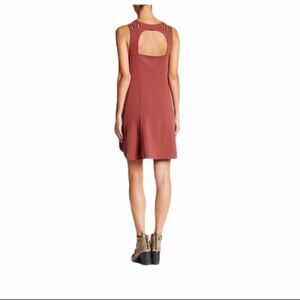Free People Baby Love Trapeze Dress. Brick red trapeze dress. Grommet and shoelace shoulders. Cutout back. Round neck. Sleeveless. Pullover. . 62% polyester, 32% rayon, 6% spandex. Size: small. Original price: $98.00. NWOT.