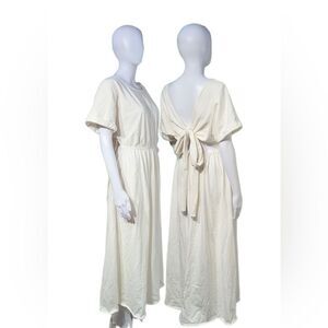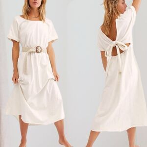 This textured, free flowing staple is an effortless essential from the FP free-est collection, this breezy midi dress features cuffed short sleeves and back twist detail with defined waist in a relaxed silhouette.