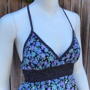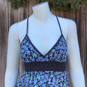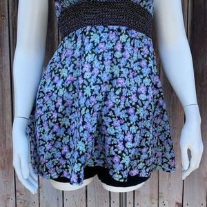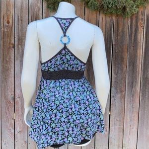 Gorgeous Floral Free People Black Purple Blue and Green Racerback Tank, Size 2 100% Cotton Excellent condition