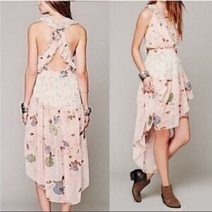 Free People Floral Skies Hi-Low Ruffle Midi Dress S
