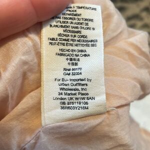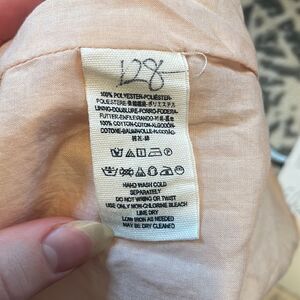 Features: sleeveless silhouette, V neck, open keyhole back, ruffle sleeves, hi-low hem, lightweight chiffon fabric, elastic waist, partially lined, light pink multi print