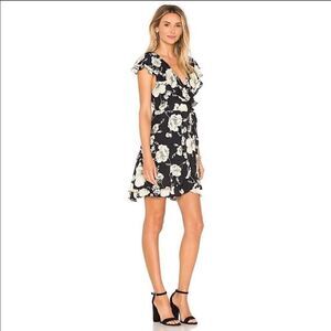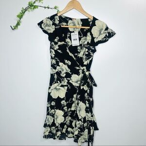 Free People Black White Cream Floral Ruffle Wrap Dress