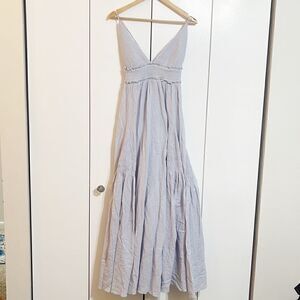 Stand out while soaking up the sun in this gorgeous maxi dress from our free-est collection featured in a V-neck silhouette with smocked empire waistline and pleated bottom piecing for added dimension.