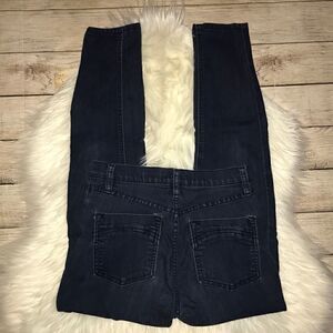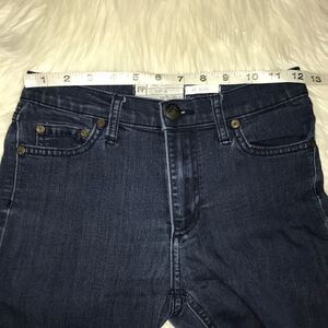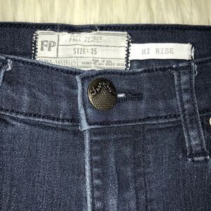Good, preloved condition. Free People Hi Rise Denim Jeans. Dark wash. Great stretch. These jeans show some wear with puckering on the front and back, and a small pick near the back pocket. Please see all photos.49% rayon, 32% cotton, 17% polyester, 2% spandex.