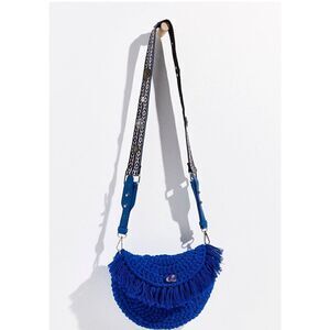 Free People Indigo Blue Macrame Moon Crossbody Bag