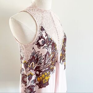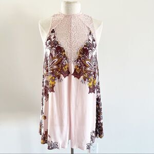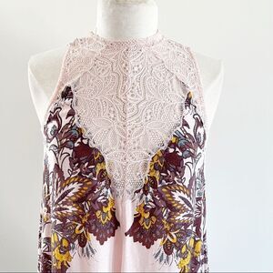 Floral lace neck line Back button detail Floral print Mini length Size XS New with tags 17" pit to pit 32" long Z51