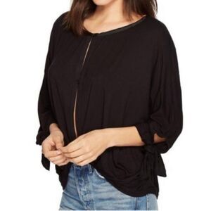 Free People Keepin On Tie Sleeve Top Blouse Black