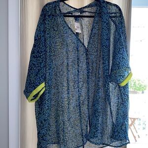 Free People LOUNGE WEAR HI LOW PRINT TOP BLUEGREEN
