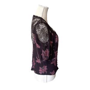 Free People Lace & Floral Button Down Balloon Sleeve Top Size Small