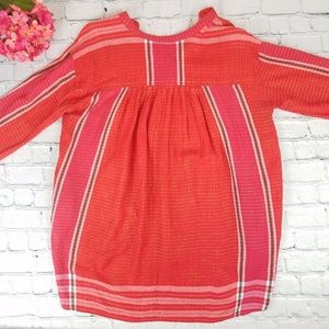 Women's red and pink long sleeve shirt with pockets and subtle gold stripes throughout. Shirt is in excellent condition, free from any flaws or signs of wear and comes from a smoke free home. Size is a small and measures as follows, laying flat: