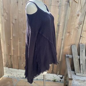 Nothing says cozy like this over sized thermal with cut out details on the shoulders. Pair with boyfriend jeans or your favorite skinny jeans.