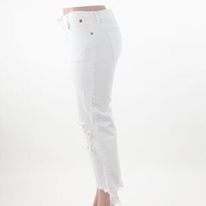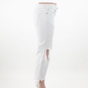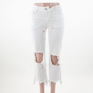 The Free People Maggie Mid-Rise Straight Leg, featuring dramatically distressed and frayed cropped hems, will help you create a unique look no matter what's on your agenda. Beltloop waistband with classic five-pocket styling. Zip-fly and button closure.