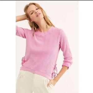 Cozy cotton thermal featuring vented sides with tied details and a cropped silhouette.