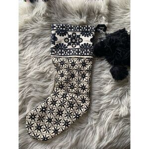Decorate the mantle during the holiday with this so stunning stocking featured in a soft cotton fabrication and oversized silhouette with wool trim, embroidered details, and chunky dangling fringe.