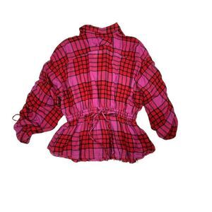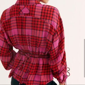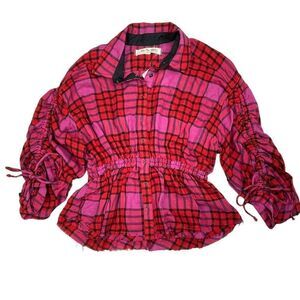 Free People Pacific Dawn Plaid Ruched Shirt Red NEW