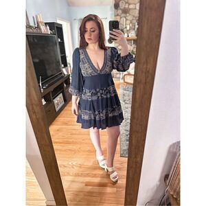 Free People boho peasant dress || size xs || good condition with minimal signs of wear || navy blue ||