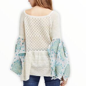 Free People Pointelle-Knit Bell-Sleeves Sweater in Size Small