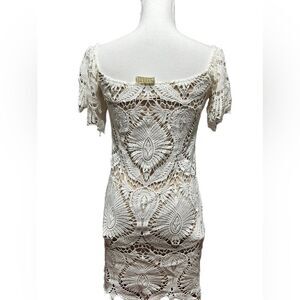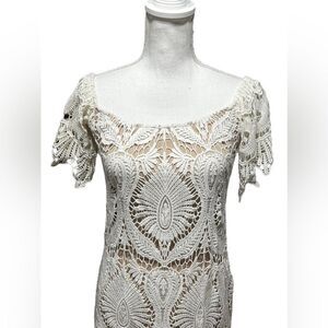 Free People Sagrada Blush Crochet Lace Off the Shoulder Mini Dress Size small. Beige lining.