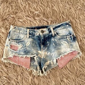 Free people shibori cutoff shorts. Size tag is missing, so please see measurements. Listed size is my best guess based on trying them on. Very cute and unique style!