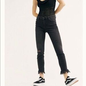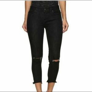 Free People Skinny Crop Frayed Distressed Mid-Rise Jeans 25