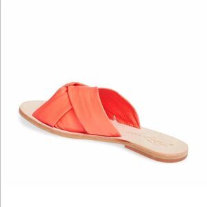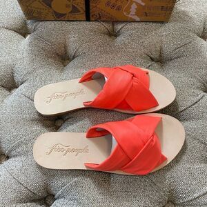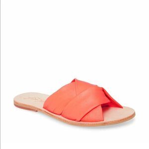 Free People Slide Sandals. Soft leather straps casually cross over one another on a flat sole. Lightly padded with a .25” heel.
