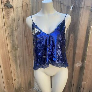 Free People Swinging Sequins Lace Trimmed Tank Top size XS