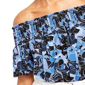Free People Technicolor Blue Bubble Top Dark Combo Small