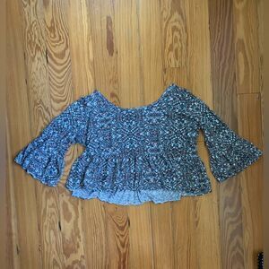 Lightly worn. Flowy crop top. Bell 3/4 sleeves. Size XS