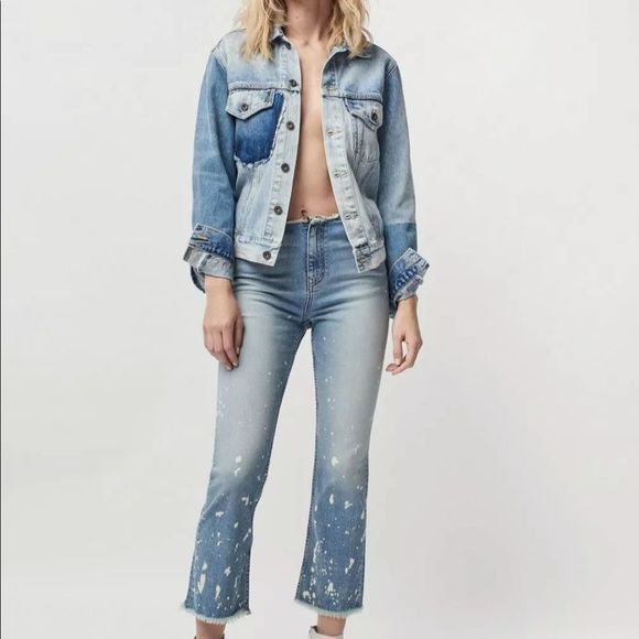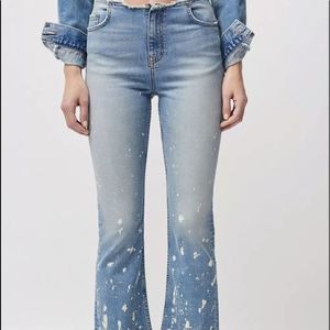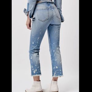 Free People denim Raw Waistband Bleach Spot Mid Rise Crop Bootcut Jeans
