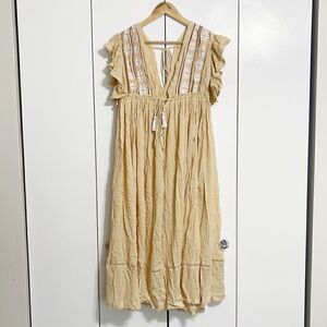 Part of our Bali collection this crinkly dress features beautiful boho embroidery detailing along the neckline.