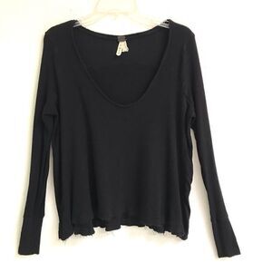 This loose, relaxed, oversize fit top has a scoop neck with ribbed cuffs, sides, inner seam and back yoke