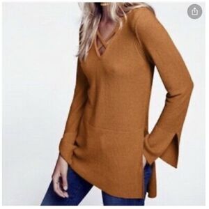Free People Women's Criss Cross Sweater Tunic in Mustard Yellow Gold $98