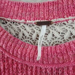 Free People Lace Crochet Back Knit Top Pink XS. Great Preowned, High & Low style. Offers welcome