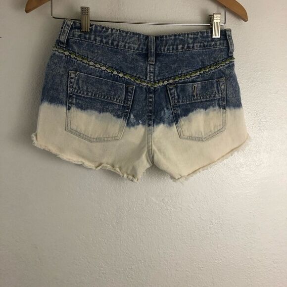 Free People tie dye Distressed embroidered detail Jean shorts size 24. Pre-owned. Great condition