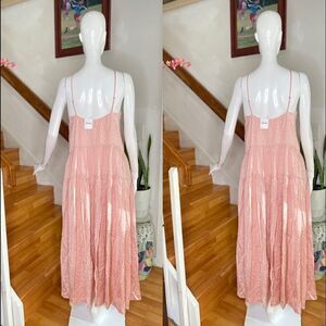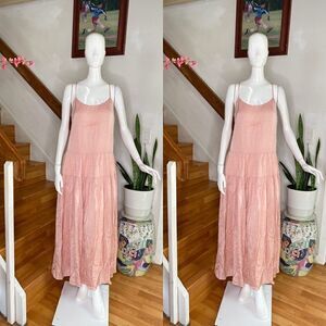 Forever dreamy in a dropped waist silhouette, this timeless maxi dress is featured in a tiered silhouette with thin shoulder straps and jacquard print for added dimension.