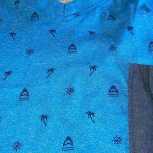 Free Planet Blue Men's Short Sleeve Shirt- Palm/Wave logos-Size Large